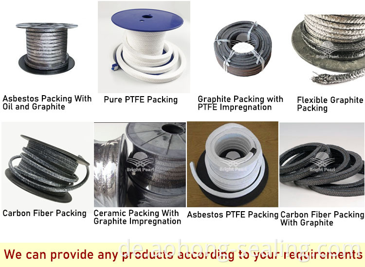 Die Aramidpackung im Vergleich zu anderen Arten von geflochtenen Packungen kann schwereren Medien und höherem Druck widerstehen. Es kann separat oder als Endringe mit anderen Packarten installiert werden, um verschiedene Eigenschaften in Dichtungen zu kombinieren, die Ringringdichtungen haben.