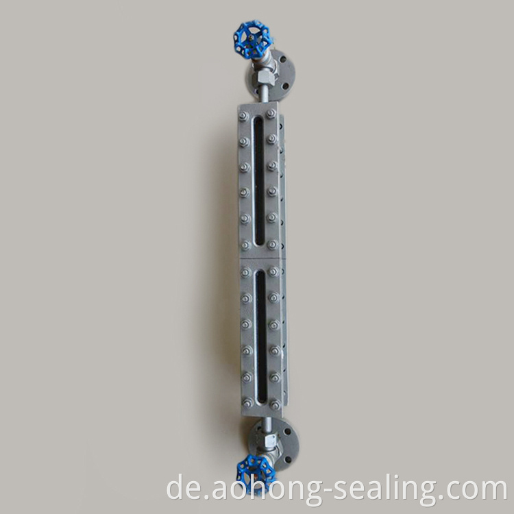 Sichtglasart. Die Levelanzeige besteht hauptsächlich durch Leiche des Levelmessgeräts, das obere Ventil (Gasventil), das untere Ventil (Flüssigkeitsventil), das Abflussventil, der Versicherungsstahlball und so weiter. Wenn die Glasplatte einige Risse aufweist oder beschädigt wird, stoppt der Versicherungsstahlball automatisch das Seitenventil an Gas und Flüssigkeit, um das Fluss zu vermeiden oder zu verringern. So kann der Arbeiter das untere Ventil abschneiden, um damit umzugehen. Dieses Serienprodukt ist stabil, versiegelt und zuverlässig und einfacher Installation, die ein ideales Instrument für die Erkennung von Flüssigkeitsspiegel in allen Arten von Behältern mit mittlerem oder niedrigem Druck ist. Der Behälter zur Bildung eines Permeators, dann ist die Höhe der Flüssigkeit direkt zu sehen.